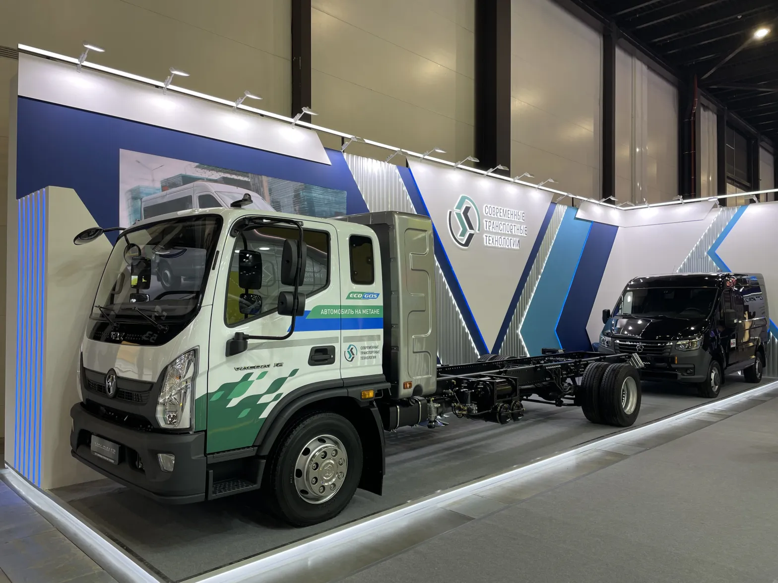 С 8 по 11 октября в рамках Петербургского международного газового форума Группа компаний «Современные транспортные технологии» впервые представляет передовую разработку в области техники на компримированном природном газе – новый среднетоннажный грузовик Валдай 12 CNG. Также посетители могут увидеть микроавтобус Соболь NN в VIP-исполнении для встречи высокопоставленных делегаций и корпоративных перевозок.