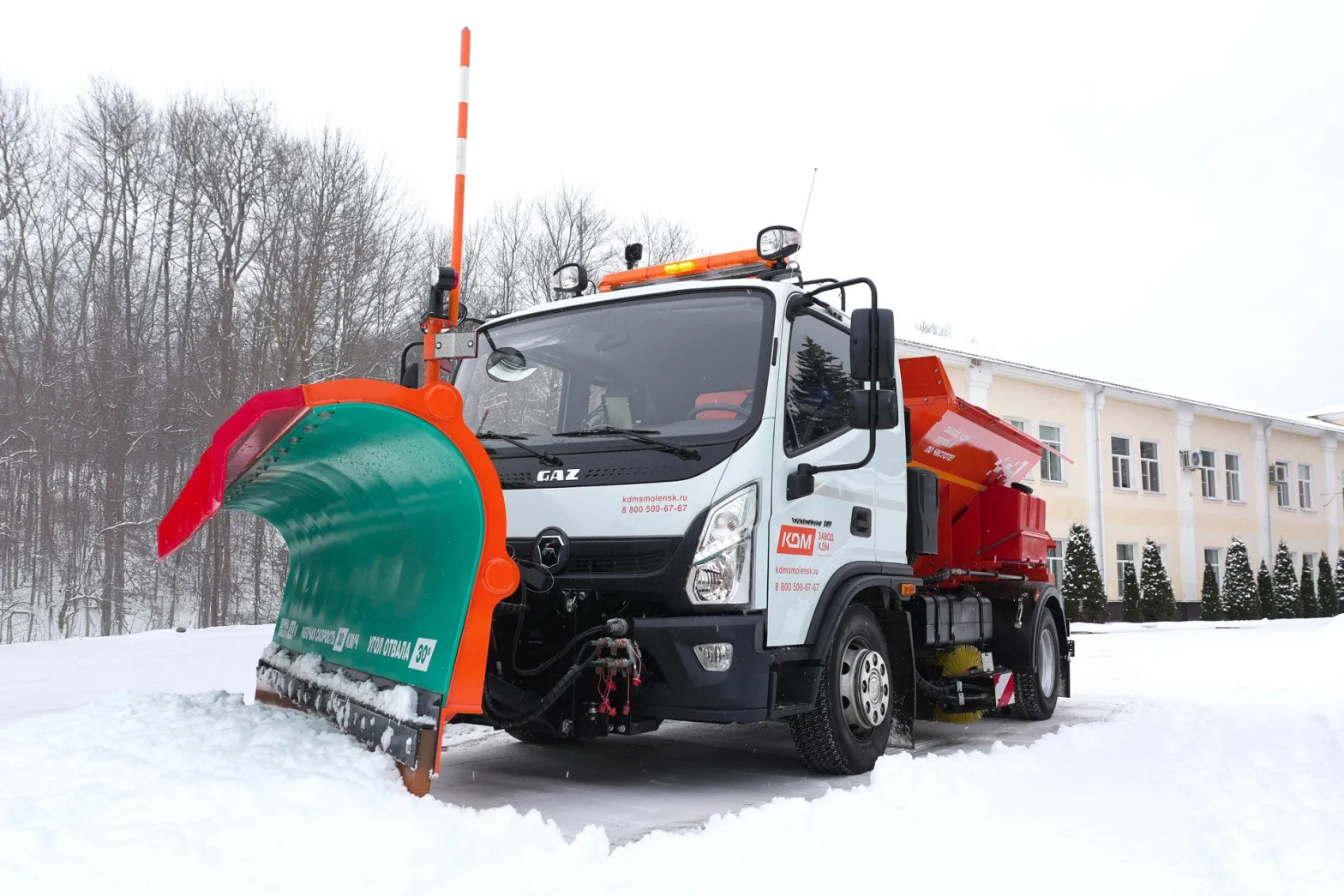В рамках партнерского проекта по развитию производства и продаж спецтехники компания «Современные транспортные технологии» и один из ведущих в России производителей коммунальной техники – «Завод КДМ» – представили новую компактную модель комбинированной дорожной машины (КДМ) на шасси бескапотного грузовика «Валдай 12». Небольшие габариты, лучшая в своем классе маневренность и высокая производительность делают этот автомобиль оптимальным решением для работы в стесненных городских условиях, обслуживания парков, промышленных зон и сельских поселений.
