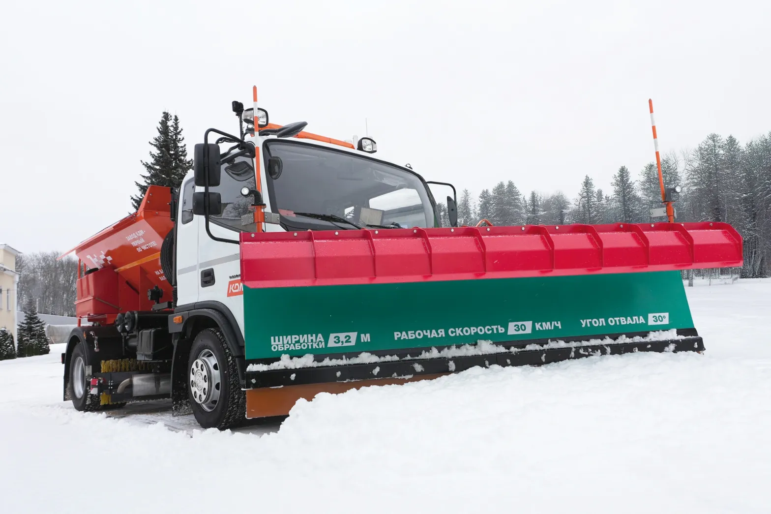 Заказчик может выбрать один из вариантов кузова и отвала: они могут быть изготовлены или по традиционной технологии – из металла, или из современных композитных материалов. Благодаря высокой ударопрочности, а также стойкости к износу и воздействию коррозии композит обеспечивает повышенный срок службы оборудования. Кроме того, этот материал обеспечивает более легкое скольжение песка, соли или крошки, что предотвращает их налипание на поверхность отвала или стенки кузова.