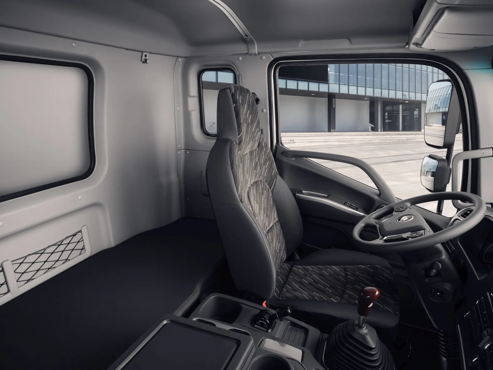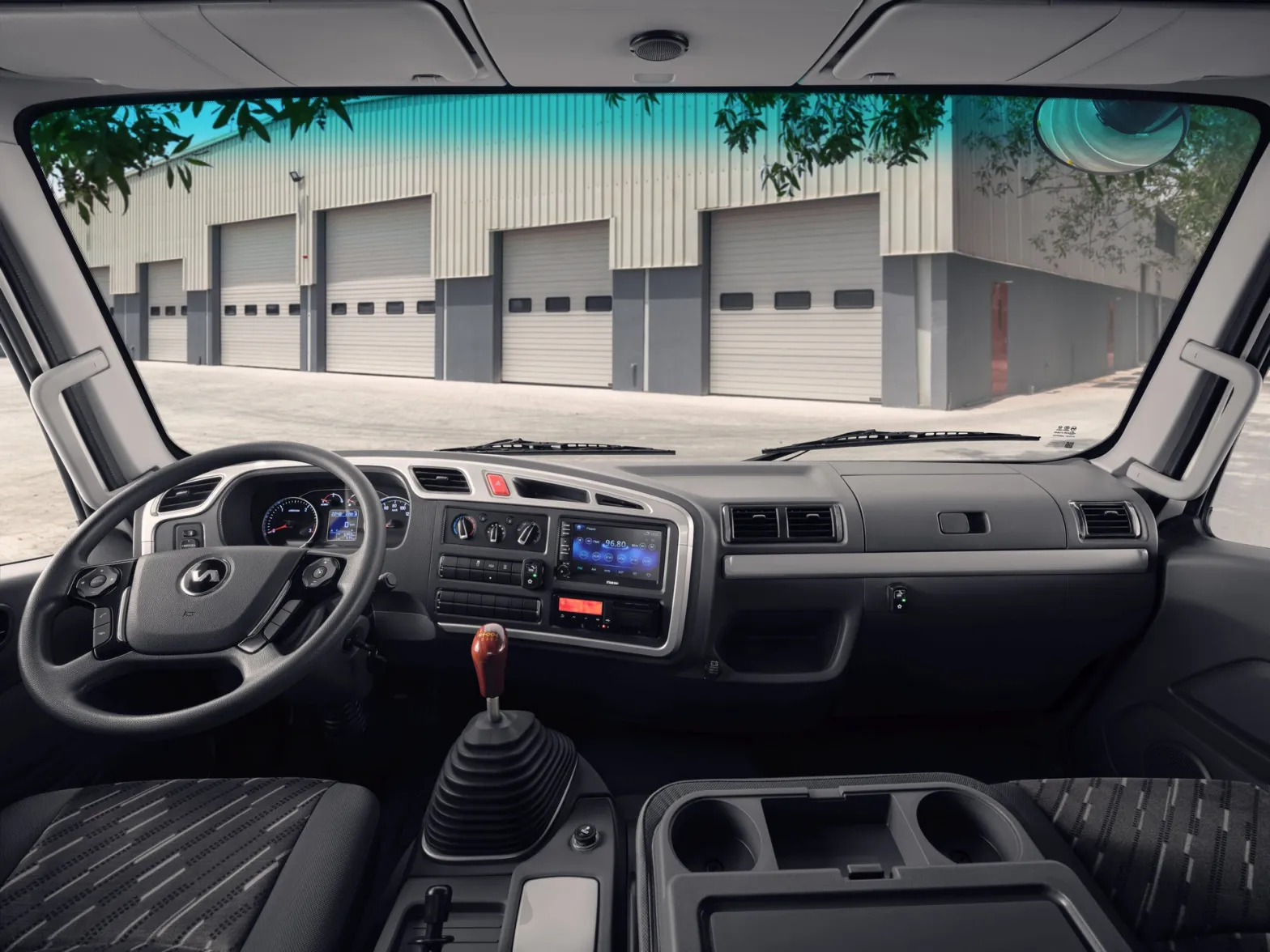 Богатая базовая комплектация автомобиля включает пневматическую заднюю подвеску, которая обеспечивает сохранность груза и комфорт водителя за счет высокой плавности хода и уменьшает нагрузку на раму и элементы конструкции, предотвращая их преждевременный выход из строя. Пневматическая задняя подвеска позволяет поддерживать постоянную высоту рамы вне зависимости от веса груза, помогая сохранять стабильное сцепление колёс рулевой оси и улучшая тем самым управляемость. А на складских терминалах пневмоподвеска дает возможность точно отрегулировать погрузочную высоту автомобиля под высоту загрузочной рампы.